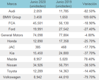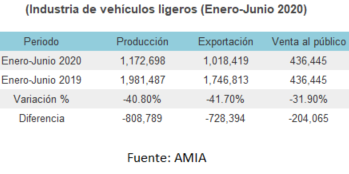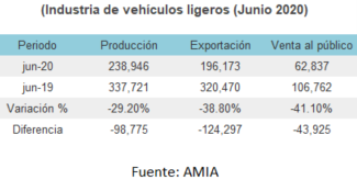 Por otra parte, la exportación de vehículos cayó 38.8% en comparación con junio de 2019 con 196,173 unidades; sin embargo, aumento 1,200% con relación a los 15,088 vehículos exportados en mayo.